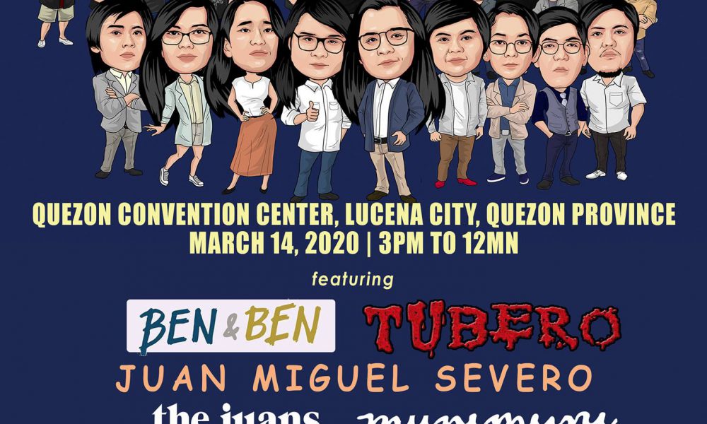 Quezon Convention Center Lucena City March 14,2020 1pm to 12mn BEN & BEN, TUBERO, The Juans, Munimuni, CHNDTR, DELANEY, Andrea Babierra, Frizzle Anne **plus more bands/artists to be announced soon* EARLY BIRD Promo from March 1 to 10. P500 – ...