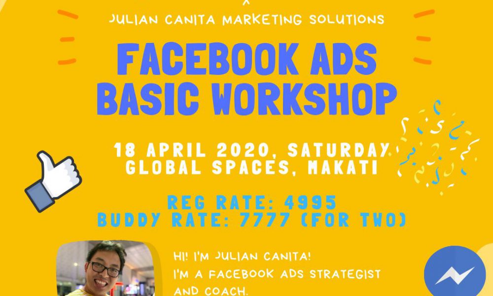 April 18, 2020 at 1 PM – 5 PM GlobalSpaces Level 5 Trevi Tower 3 2216 chino Roces Avenue, Makati 1233, Metro Manila, 1233 Makati Tickets https://docs.google.com/forms/d/e/1FAIpQLSeo_AwhbRzlbyqBjvXbOzqo9-t_WmbH0e5MGljcPmlVZRvXrw/viewform?usp=send_form Hosted by Allison Brights OPC and Julian Canita This a four (4) hands-on ...