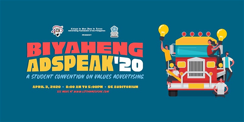 Fri, April 3, 2020 8:00 AM – 5:00 PM PST Colegio de San Juan de Letrán 151 Muralla Street Manila, 1002 A Student Convention on Values Advertising Presented by the Colegio de San Juan de Letran & the Advertising Foundation ...