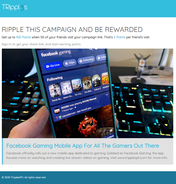 Wanna earn rewards/points and cash by rippling and sharing cool events, promos and campaigns online? Then, sign-up on www.tripplesph.com NOW!