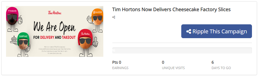 Available cheesecake flavors may very per branch. Depending on the store, you can have your Tim Hortons goodies delivered via direct delivery, Foodpanda, GrabFood, or LalaFood.