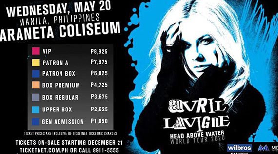 May 20, 2020 at 8 PM – 11 PM Smart Araneta Coliseum Quezon City, Philippines Tickets www.ticketnet.com.ph Quote from Avril:“I missed being up on stage ...