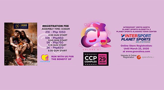 Sunday, March 29, 2020 at 3 AM – 9 AM Liwasang Ulalim, CCP Complex Pasay City, Philippines Run for a cause: Colors of Love 3 ...